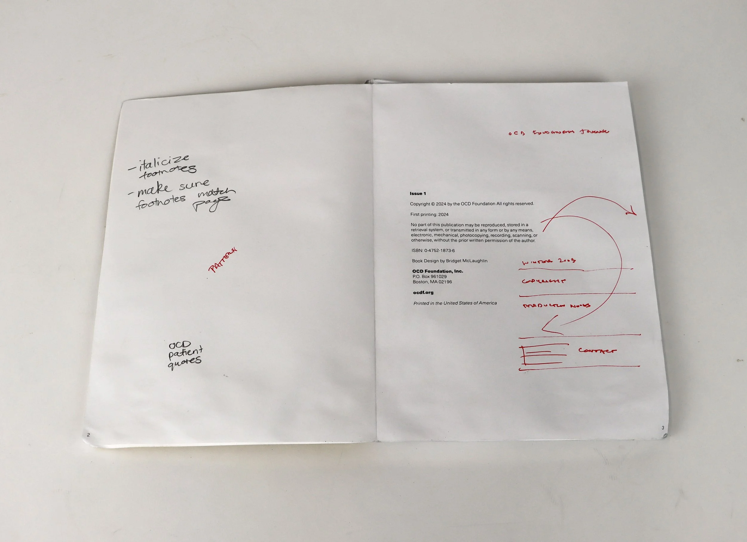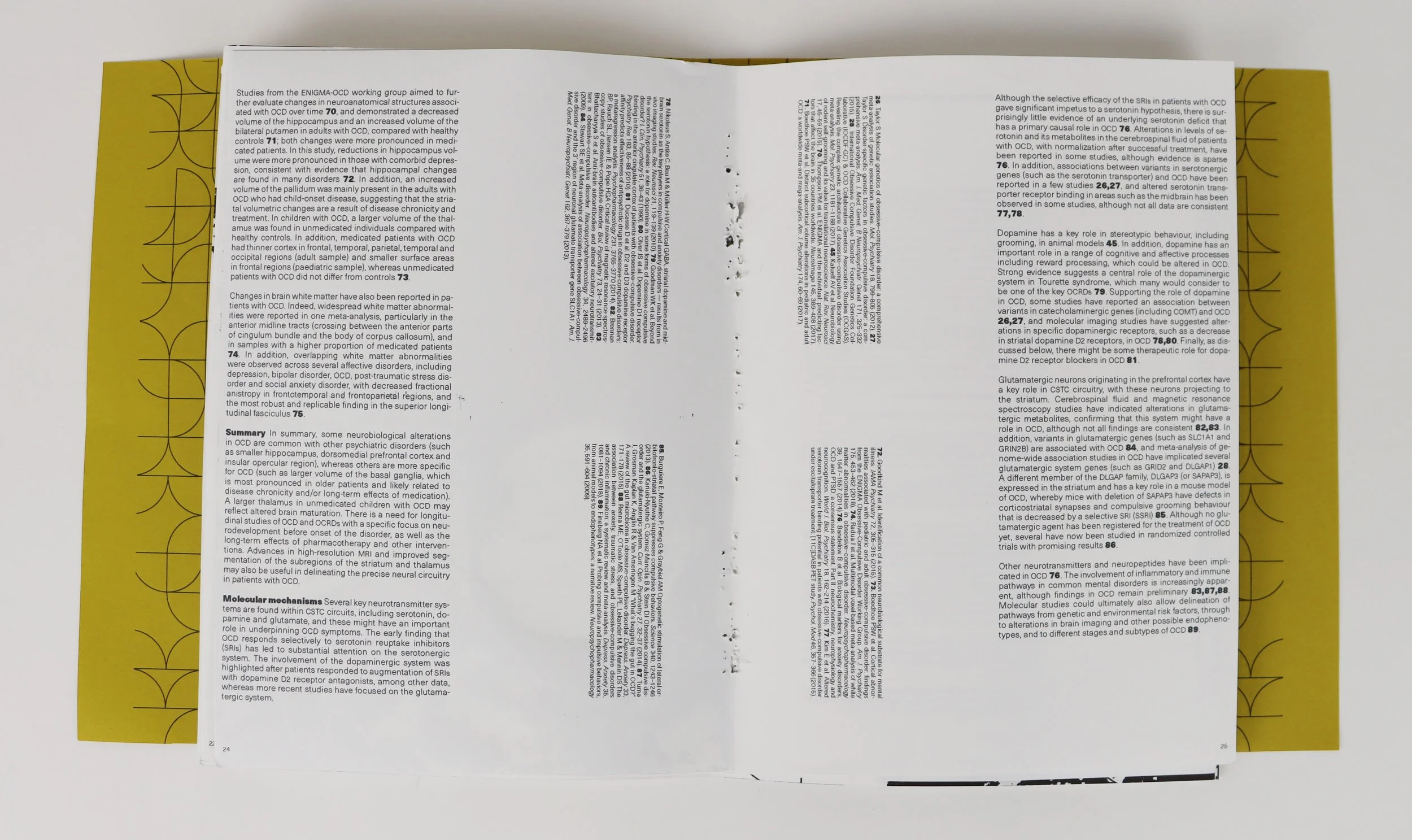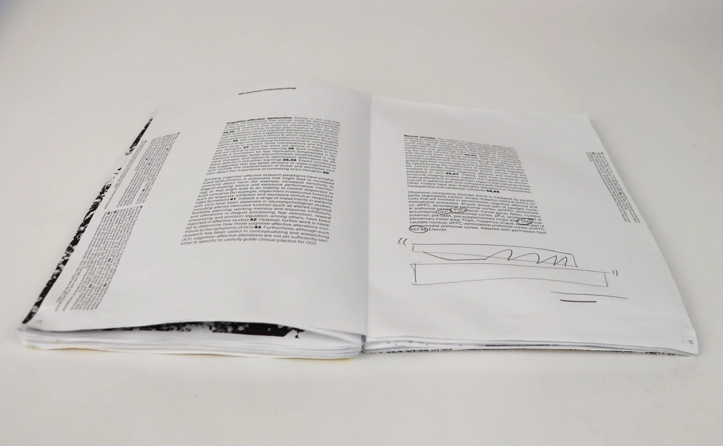 OCD is much different than how it’s typically portrayed. It’s more than washing your hands or liking when things are “just-so.” It is a personality disorder characterized by excessive orderliness, perfectionism, attention to details, and a need for control in relating to the self and others. I drew on my experience with OCD to create a medical journal that could be used by mental health professionals. Medical journals can often be poorly designed, sterile, and lacking in humanity. I wanted to visually portray this very abstract feeling of OCD from an authentic and human perspective.
